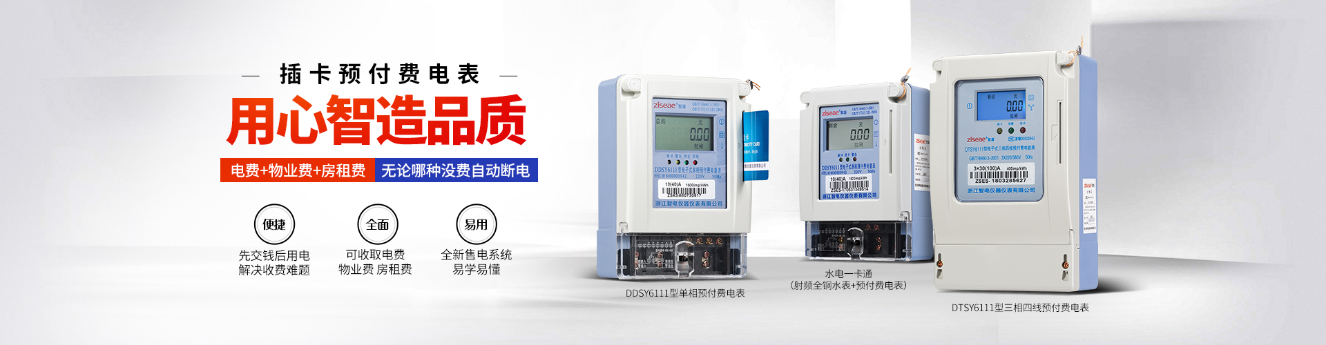 浙江智電儀器儀表有限公司現注冊資金1000萬元,是一家從事儀器儀表開發、生產、銷售為一體的企業,公司主要生產:單相預付費電表、三相預付費電表、導軌式電表、導軌式485通訊電表、多功能導軌電表、手機充值電表、手機充值繳費預付費電表、手機APP充值系統、NB-IOT物聯網水電表、WiFi電表、4G通訊電表、485通訊電表、插卡電表、有功無功電表、單三相電表、多費率電表(分時電表)、多費率階梯預付費電表、智能電能表、水電一卡通、樓道均分器等產品。